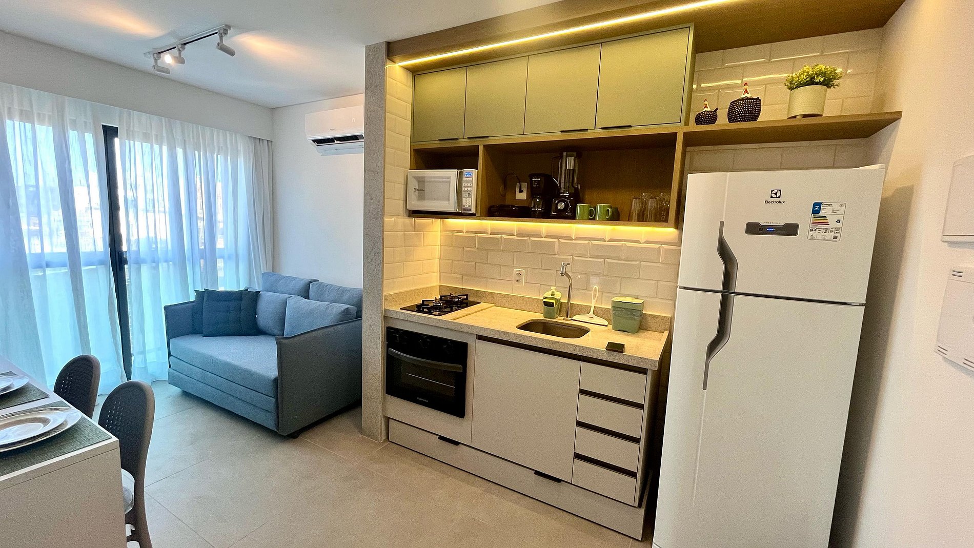 Flat completo e SUPER bem decorado, localizado no condomínio Green Porto, no centrinho de Porto de Galinhas, a poucos metros das piscinas naturais, da famosa rua das sombrinhas e dos melhores restaurantes e lojas. Flat 100% equipado, com enxoval, cama tamanho padrão, sofá-cama, ar-condicionado, smarTV, geladeira, fogão, forno, microondas e muito mais! O prédio dispõe de playground,rooftop com churrasqueira e piscina com vista das piscinas naturais. Viva a experiência de hospedar-se no coração de Porto!