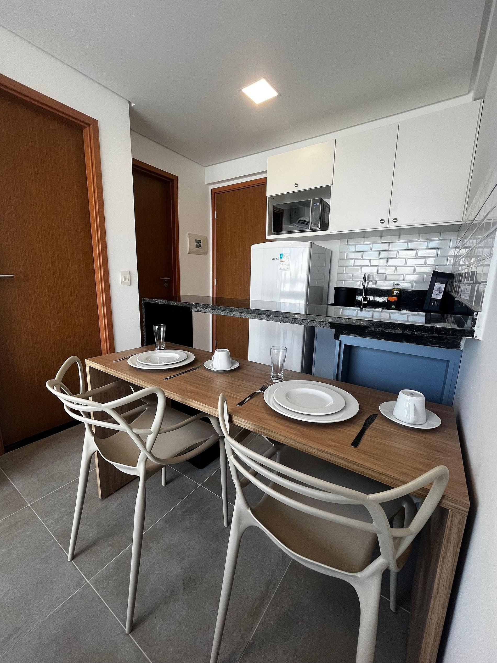 O condomínio oferece uma charmosa área externa com espaço gourmet e uma excelente piscina, ideal para momentos de descanso e lazer. Viva a experiência de uma estadia premium com a Alta Hospedagens!
