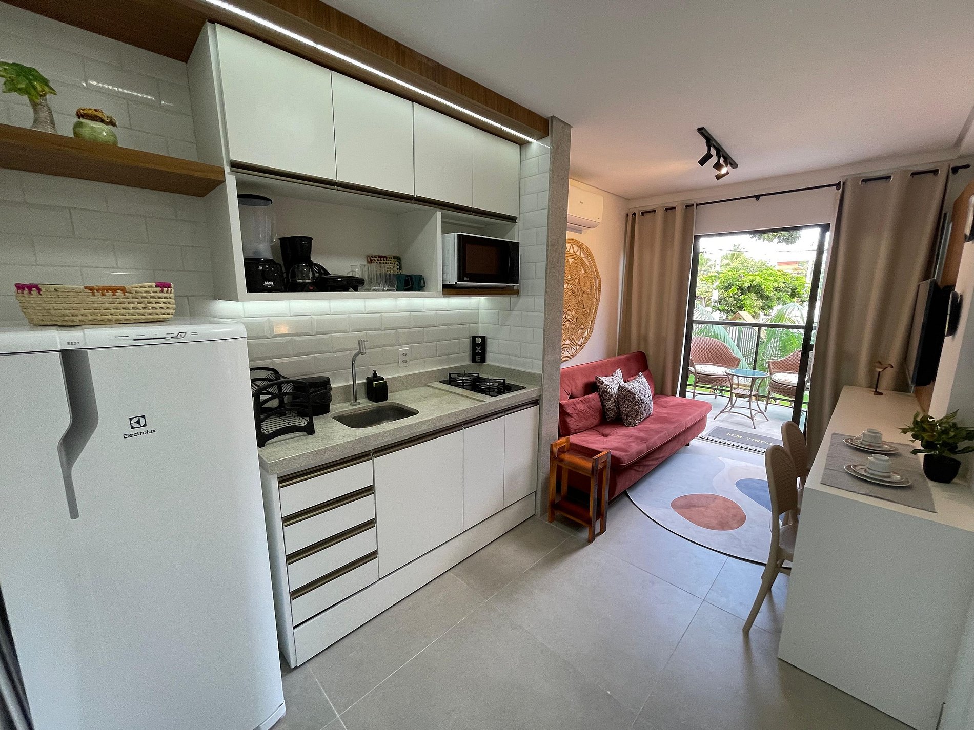 Flat completo e SUPER bem decorado, localizado no condomínio Green Porto, no centrinho de Porto de Galinhas, a poucos metros das piscinas naturais, da famosa rua das sombrinhas e dos melhores restaurantes e lojas. Flat 100% equipado, com enxoval, cama tamanho padrão, sofá-cama, ar-condicionado, smarTV, geladeira, fogão, microondas e muito mais! O prédio dispõe de playground,rooftop com churrasqueira e piscina com vista das piscinas naturais. Viva a experiência de hospedar-se no coração de Porto!
