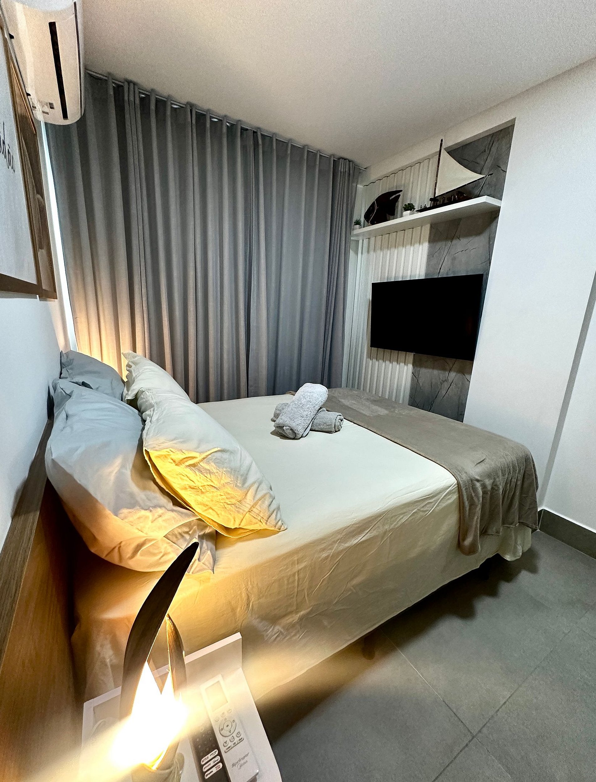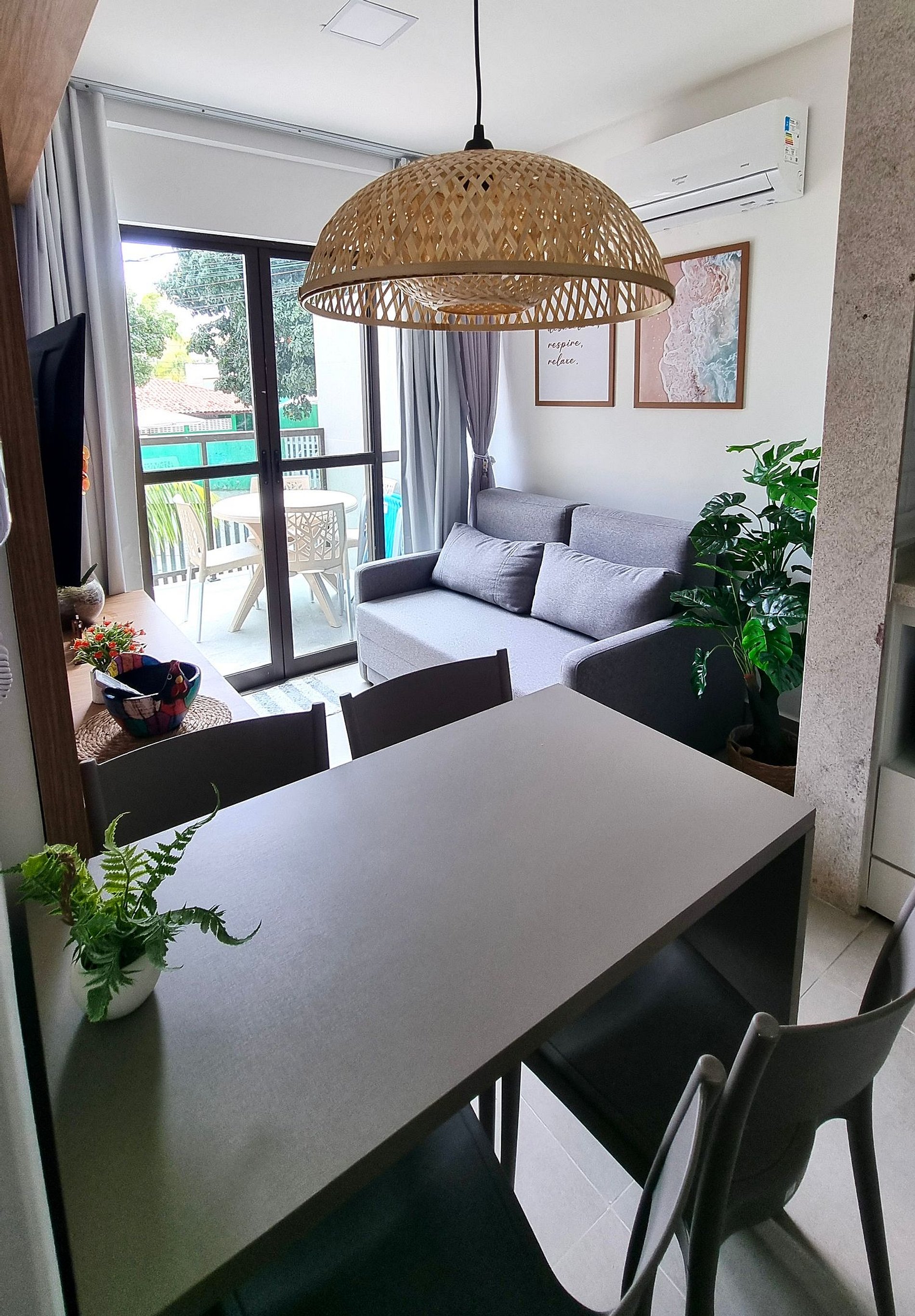 Flat completo e SUPER bem decorado, localizado no condomínio Green Porto, no centrinho de Porto de Galinhas, a poucos metros das piscinas naturais, da famosa rua das sombrinhas e dos melhores restaurantes e lojas. Flat 100% equipado, com enxoval, cama tamanho padrão, sofá-cama, ar-condicionado, smarTV, geladeira, forno, microondas e muito mais! O prédio dispõe de playground,rooftop com churrasqueira e piscina com vista das piscinas naturais. Viva a experiência de hospedar-se no coração de Porto!